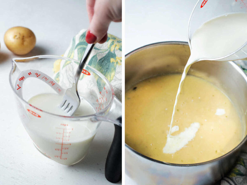 That’s what inspired me to rework this classic. Many old-fashioned potato soup recipes lean heavily on whole milk or heavy cream, but my version uses just one cup of milk and still turns out perfectly creamy.